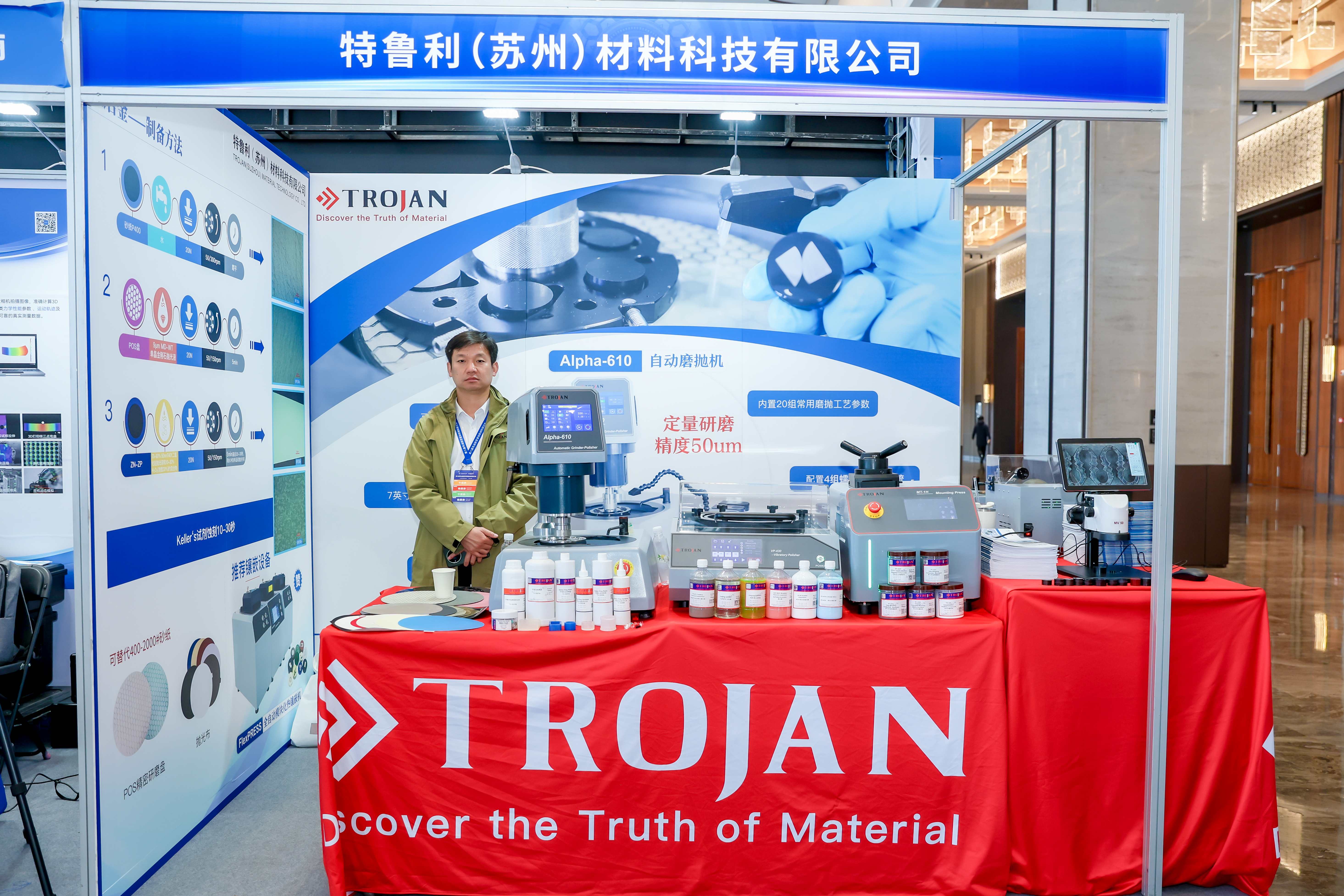 Als herausragender Partner dieser Konferenz präsentierte Trojan seine Lösungsreihe für die Materialprüfung von Flugzeugtriebwerken. Mehrere Ausrüstungsgegenstände, darunter die Automatische Schleif- und Poliermaschine Alpha-610 , Vibrationspolierer VP-430 , und CT-150 Präzisionsschneidemaschine mit niedriger Geschwindigkeit , erregten durch ihre außergewöhnliche Leistung große Aufmerksamkeit.