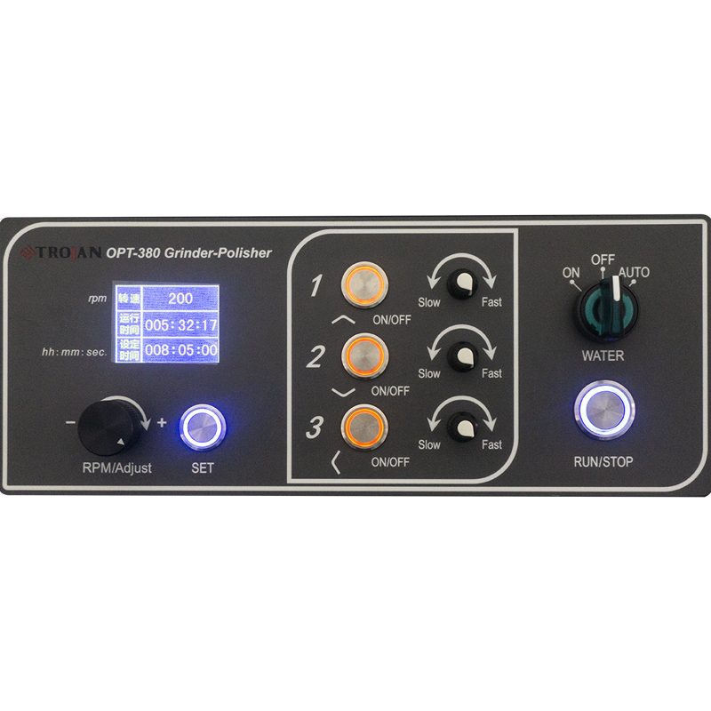 OPT-380 bietet eine außergewöhnliche Gesamtleistung und eignet sich daher ideal zum Schleifen und Polieren der Probenvorbereitung einer Vielzahl von Materialien, darunter Metalle, Keramik, Glas, Leiterplatten, optische Materialien (wie Zinksulfid, Silizium und andere), feuerfeste Materialien und Verbundwerkstoffe. Es ist eine ausgezeichnete Wahl sowohl für wissenschaftliche Forschungseinrichtungen als auch für Produktionsunternehmen. Mit der Φ380-mm-Scheibe können Proben mit einem Durchmesser von bis zu Φ142 mm oder eine rechteckige Probe mit einer diagonalen Länge von bis zu 142 mm vorbereitet werden.